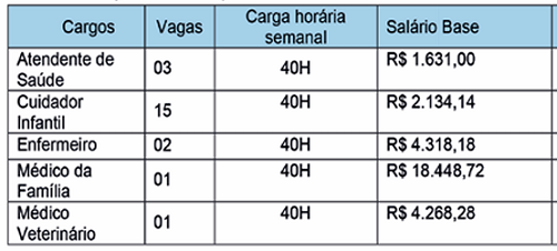 Os salários variam de R$ 1,6 mil a R$ 18,4 mil.