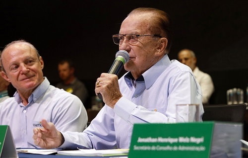 José Aroldo Gallassini, presidente do Conselho de Administração da Coamo, durante a 56ª Assembleia Geral Ordinária da cooperativa, que apresentou em 2025 um faturamento de R$ 28,7 bilhões; quinta-feira.