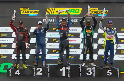 Aconteceu neste domingo, em Campo Grande/MS, a primeira etapa da temporada da Copa Truck. O piloto de Campo Mourão, Pedro Perdoncini, estreou na categoria Pro, a principal da competição. A estreou bem, obrigado, Ficou em quarto lugar na corrida 1 e, em terceiro (pódio) na corrida 2. No ano passado, ele foi campeão na categoria Elite. Próxima prova dia 12 de abril, em Santa Cruz do Sul/RS.