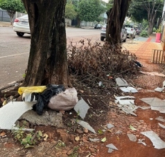 Entulhos deixados há meses em calçada da rua Interventor Manoel Ribas. Além de dificultar a passagem dos pedestres, passa uma imagem de desleixo em plena área central.
