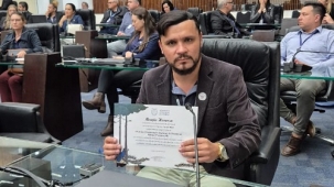 A Assembleia Legislativa do Paraná realizou sessão solene nesta terça-feira para comemorar os 10 anos da campanha Maio Amarelo. A iniciativa do deputado Hussein Bakri incluiu homenagem ás chefias das Circunscrições Regionais de Trânsito. O chefe da 8ª Ciretran, de Campo Mourão, Leandro Cristiano da Silva, foi um deles e estava lá para receber a menção honrosa.