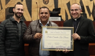 O futuro bispo de Campo Mourão, d. Evandro Luís Braun, será empossado no próximo dia 3. Antes, nesta segunda-feira, recebeu o título de Cidadão Honorário de Ponta Grossa. A homenagem foi iniciativa do vereador Divo. Nomeado pelo papa Francisco em abril, d. Evandro atuou mais de 20 anos em Ponta Grossa e na região dos Campos Gerais.