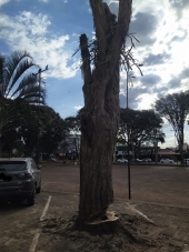 Situação urgente na praça da Catedral. Iniciaram uma poda de árvore e deixaram o serviço pela metade...