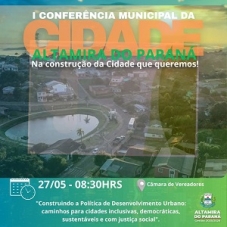 Altamira do Paraná – Acontece no próximo dia 27 (8h30), na Câmara, a 1ª Conferência Municipal da Cidade. Tema? “Construindo a política de desenvolvimento urbano: caminhos para cidades inclusivas, democráticas, sustentáveis e com justiça social.