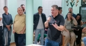 O deputado estadual Dr Leônidas esteve em Campo Mourão nesta quinta-feira. Foi ele quem assumiu a vaga deixada pelo prefeito Douglas Fabrício. Em reunião, disse que não se pode ficar com a divisão “direita e esquerda” e que é hora de pensar no futuro das crianças para que não precisem deixar suas cidades para buscar vida melhor. Dr Leônidas é de Paranavaí. Douglas participou da reunião, assim como o ex-prefeito de Araruna Renato Toaldo, o vereador Sidnei Jardim e o empresário Osni Menezes.