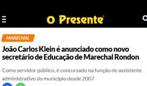 Olha a manchete desta segunda-feira do jornal “O Presente”, de Marechal Cândido Rondon. Mas calma, que esse João Carlos Klein aí é outro. Não se trata, não, do ex-prefeito de Peabiru que tem o mesmo nome. O João Carlos Klein de lá é professor e tem 50 anos, enquanto o homônimo daqui é engenheiro e está com 71.