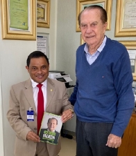 E o “recepcionista oficial” de Campo Mourão, Magnum Alves, hein? Nesta terça-feira visitou o presidente do Conselho de Administração da Coamo, José Aroldo Gallassini. Desta vez não levou um de seus tradicionais desenhos, mas não saiu de mãos abanando, não. Ganhou de presente um exemplar do livro biográfico do líder cooperativista.