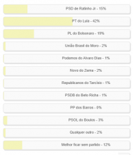 “Em que partido o ex-prefeito Tauillo Tezelli deveria se filiar?” Enquete com essa pergunta foi encerrada neste domingo. Venceu a alternativa “PT de Lula”, com 42% (pura provocação, já que Tauillo deixou Cidadania falando que o partido estava sendo “esquerda demais”). O “PL de Bolsonaro” teve 19% e o “PSD de Ratinho Jr” 15%. Para 12% é “Melhor ficar sem partido”. O resultado completo está no quadro acima. Detalhe: Alvaro Dias anunciou saída do Podemos depois que a enquete já estava no ar.