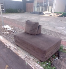 Sofá deixado em calçada na rua Harrison José Borges, centrão de Campo Mourão.
