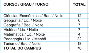 A Unespar lançou Vestibular Complementar 2026 com 234 vagas em cinco câmpus. Em Campo Mourão são 76 vagas em sete cursos (veja acima). As inscrições podem ser feitas até 18 de janeiro. De graça. O candidato deverá optar por uma entre três formas de seleção: