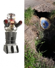 “Grande buraco na calçada na avenida de acesso ao Residencial Parque do Lago. Até sombrinha está jogada dentro. Local de passagens de pedestres.”