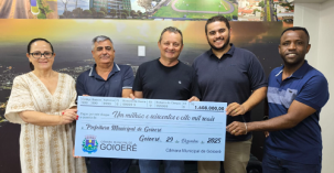A Câmara de Goioerê anunciou nesta segunda-feira a devolução de R$ 1,6 milhão para a prefeitura. O “checão” simbólico foi entregue pelo presidente Joaquim da Ambulância e outros três vereadores ao prefeito Pedro Coelho. O prefeito aproveitou para agradecer pela aprovação dos projetos do executivo ao longo do ano.