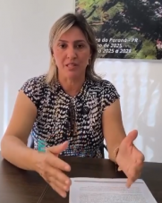 Elza A. Silva, prefeita de Altamira do Paraná, sobre a liberação do governo do Estado para asfaltar a estrada de cerca de 30 km entre sua cidade e Laranjal; em vídeo gravado junto com o prefeito Maycon Lopes (Laranjal); nesta quarta-feira.