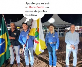 O clic é desta quinta-feira, em Farol, durante a abertura da Expofar. O prefeito Oclécio Meneses conduziu a bandeira do município. Também estão na foto o vice-prefeito Iranlei Saraiva, a 1ª dama e secretária de Assistência Social, Eliane Meneses, e o representante da Casa Civil, Osni Menezes. A Expofar segue até sábado.