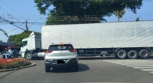 Carreta cruza a av. Manoel Mendes de Camargo nesta quarta-feira à tarde.