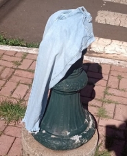 Parece que alguém perdeu uma calça no que restou de um poste republicano no calçadão de Campo Mourão...