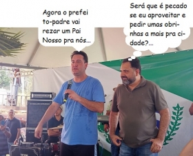 Olha aí mais um clic da festa de aniversário do governador Ratinho Jr, sábado, em Apucarana. O prefeito de Campina da Lagoa, Padre Gianny, estava lá e foi chamado à frente para fazer uma oração.