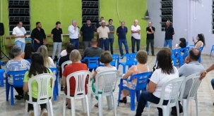 Os prefeitos Douglas Fabrício (Campo Mourão) e Gustavo França (Araruna) estiveram reunidos sexta-feira à noite na comunidade rural Alto do Divino. Foram assinar convênio para melhorias da estrada que atende a comunidade. Pelo acordo, Campo Mourão fornecerá o cascalho, enquanto Araruna entra com a mão-de-obra e demais materiais necessários. Os trabalhos devem ser iniciados ainda esta semana.