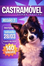 A Prefeitura de Campo Mourão realiza neste sábado as inscrições para o programa municipal de castração de cães e gatos, o Castramóvel. O cadastramento será feito na sede da Sema, ao lado da 8ª Ciretran. Serão disponibilizadas 140 vagas para cães e gatos, machos e fêmeas, com idade entre 6 meses e 7 anos. Cada tutor poderá inscrever até dois animais.