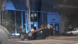 Na madrugada deste domingo, carro capota em frente à Câmara, no centro de Campo Mourão.