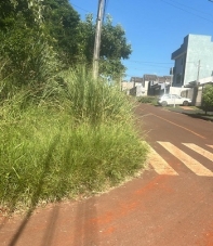 “Calçada da reserva próxima ao bosque, na rua Sebastião A. Ferreira (Flórida). O mato tomou conta. Pra virar a esquina só por Deus pra não bater com outro carro”.
