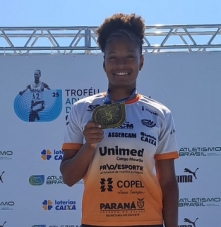 A atleta da equipe IACM/Fecam/Assercam Agnys Eduarda Ribeiro foi campeã brasileira no Troféu Adhemar Ferreira da Silva, que está sendo disputado em Bragança Paulista/SP. Foi na prova de lançamento do martelo. Detalhe: com direito a recorde paranaense sub 23. A atleta é treinada pelo professor Wellington.