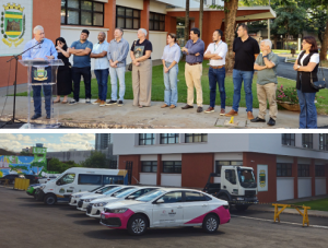 Teve solenidade nesta segunda-feira à tarde em frente à prefeitura de Campo Mourão. Foi para marcar a entrega de novos veículos à frota oficial. O investimento é de cerca de R$ 2 milhões, através de parcerias com o governo do Estado. O prefeito Douglas Fabrício participou, assim como a vice-prefeita Fátima Nunes e sete vereadores.