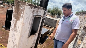 Em Luiziana, ladrão furtou a fiação elétrica e o padrão de energia do poste que distribui energia pelo Cemitério Municipal. O furto deixou o “campo santo” às escuras. “É lamentável que tenhamos que lidar com esse tipo de situação em um local que deveria ser preservado e respeitado”, destacou o secretário de Obras, Luiz Carlos de Oliveira Ferreira.