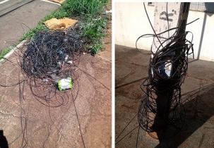 A “fiozeira” continua enfeiando as ruas de Campo Mourão, seja esquecida pelo chão (rua São Josafat) ou enrolada em poste (rua São José).