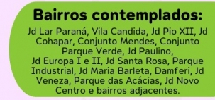 O Castramóvel de Campo Mourão fará inscrições neste sábado para mais uma etapa de castração de gatos e cachorros. Desta vez serão contemplados os bairros do chamado “grande Lar Paraná”. A inscrição começa às 8h e segue enquanto houver vagas. Será nos fundos do ginásio do Lar Paraná. Vale só um animal por endereço, animais de ambos os sexos, de 6 meses a sete anos. A família precisa estar cadastrada em programas do governo federal ou ter renda de até três salários mínimos.