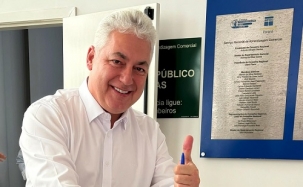 Douglas Fabrício (Cidadania), prefeito eleito de Campo Mourão, no discurso em que pediu voto para a eleição de presidente do Cis-Comcam, onde enfrentou o prefeito reeleito de Corumbataí do Sul, Xandão Donato; nesta sexta-feira.