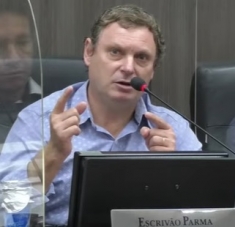 Escrivão Parma (PSD), vereador em Campo Mourão, líder do governo na Câmara, ao defender do prefeito Tauillo Tezelli (Cidadania), mas fazer ressalva com relação a secretarias municipais no atendimento aos vereadores; na sessão desta terça-feira.