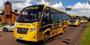 Milton Luiz Alves, prefeito de Campina da Lagoa, sobre um desfile que reuniu 15 ônibus esolares da frota municipal, sendo quatro deles compraedos este ano e quase todos adquiridos com recursos próprios; em postagem em redes sociais.