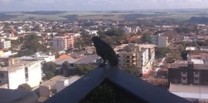 Urubu observa Campo Mourão de sacada do edifício Likes, no centro da cidade.