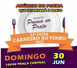Peabiru - A prefeitura vai anunciar no domingo (15h30), o vencedor do projeto Poema no Prato. Mais de 200 estão concorrendo. A poesia escolhida estampará o prato da Festa do Carneiro ao Vinho,