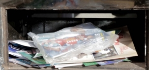 Material de campanha do candidato a vereador Olivino Custódio entregue dentro de saquinho plástico, por causa da pandemia. Os cabos eleitorais usam luvas para ensacar os santinhos e carregarm frasco de álcool gel para higienização das mãos.