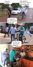 Os cliques são da campanha eleitoral em Campo Mourão na conjunto Fortunato Perdoncini e na "Rua das Palmeiras", no Lar Paraná. O deputado Douglas Fabrício não deixou a bicicleta nem na hora de entrar no bar. O deputado federal Rubens Bueno e o secretário de Estado Márcio Nunes também estão nas fotos.