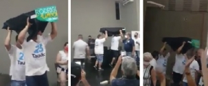 A festa da vitória do prefeito Tauillo Tezelli (CDN), reeleito para o quarto mandato em Campo Mourão, incluiu um improvisado caixão de defunto com o nome do candidato derrotado Rodrigo Salvadori (PP). A urna funerária não era de verdade. Dois homens desfilaram pelo salão do Celebra com o caixão sobre as cabeças. Só faltou a musiquinha da "meme do caixão"...