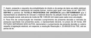 A liminar prevê multa de R$ 1 mil em caso de nova postagem.