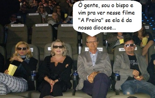 O clic é desta quarta-feira à noite, na inauguração da segunda sala do Cinemax"s, no Paraná Família. O bispo d. Bruno Versari prestigiou o evento. Olha ele aí, na mesma fileira da vereadora Nelita Piacentini e de Leila e Álvaro Machado da Luz, do Paraná Supermercados. Também, com o cinema exibindo o filme "A Freira" na estreia...
