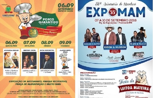 Mamborê promove nesta quinta-feira o baile de aniversário da cidade. De sexta a segunda-feira acontece a 35ª Expomam, com Edson & Hudson e Felipe & Falcão. Domingo tem a 15ª Festa da Leitoa Mateira. Convite a R$ 40.