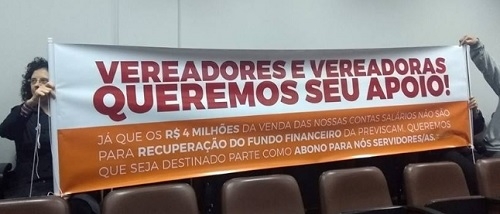 Nesta segunda-feira levou faixa à Câmara com pedido de apoio.