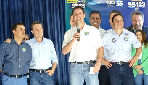 O governador Ratinho Jr esteve nesta sexta-feira à noite em Goioerê. Foi participar de evento de campanha com os deputados Márcio Nunes (estadual) e Sandro Alex (federal), que disputam a reeleição. Além do prefeito anfitrião. Betinho Lima, participaram os prefeitos de Quarto Centenário, Akio Abe, e de Moreira Sales, Rafael Bolacha.