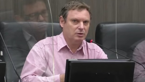 Escrivão Parma (PSD), vereador em Campo Mourão, durante a votação da Comenda 10 de Outubro pelos 20 anos do Santuário de Nossa Senhora Aparecida, proposta por ele, que se disse devoto da santa. Parma citou que, quando teve covid-19, chegou a ser "desenganado"; na sessão desta segunda-feira.