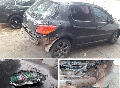 Imagens de câmera de segurança mostram uma pessoa colocando fogo no carro. Vizinhos contiveram o incêndio.