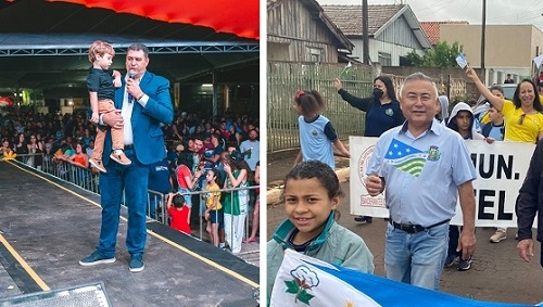 1) Em Barbosa Ferraz, o prefeito Edenilson Miliossi participou da programação dos 62 anos do município e, ao mesmo tempo, teve de cuidar do filho caçula. Até na hora do discurso.