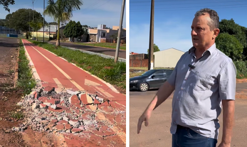 Pedro Coelho, prefeito de Goioerê, ao mostrar estragos feitos em ciclovia do jardim Curitiba por caminhão que fez manobra irregular; em vídeo postado em redes sociais, quarta-feira.