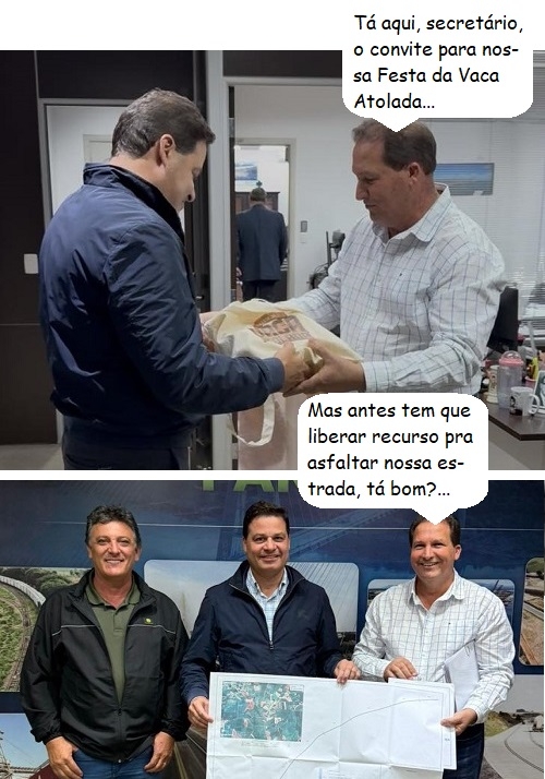 Os cliques são de Curitiba, onde o prefeito de Boa Esperança, Joel Buscariol, e o vice Carlinhos se reuniram com o secretário de Estado Sandro Alex (Infraestrutura). Levaram o convite para a Festa da Vaca Atolada e protocolaram o projeto de pavimentação asfáltica de 5 km, ligando Alto Palmital até o Rio Riozinho, na divisa com Farol.