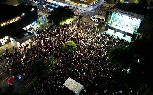 A banda Nenhum de Nós fez show, sábado, em Campo Mourão, para comemorar os 30 anos do Teatro Municipal.