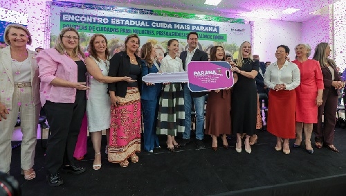 O governador Ratinho Jr participou, nesta segunda-feira, do Encontro Estadual Cuida Mais Paraná. Na oportunidade, entregou aos municípios 72 veículos para serem usados em ações voltadas a mulheres. Seis são para a região da Comcam. As prefeitas Doutora Marília (Roncador) e Elza Aparecida da Silva (Altamira do Paraná) tiveram direito a ficar pertinho do governador na hora da foto.